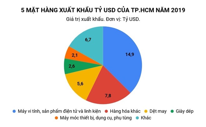 Theo Cục Thống kê TP.HCM, tổng kim ngạch xuất khẩu hàng hoá của TP năm 2019 ước đạt 39,7 tỷ USD, tăng 17,3% so với năm trước. Trong đó, Trung Quốc là thị trường xuất khẩu lớn nhất với kim ngạch 8,3 tỷ USD, tăng 25% so năm 2018, chiếm 21% tỷ trọng xuất khẩu.